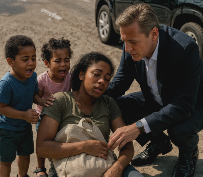 Une mère sans abri, épuisée, s’est effondrée au bord d’une route avec ses deux bébés jumeaux dans les bras. Alors que les passants détournaient le regard, une voiture de luxe s’est arrêtée.