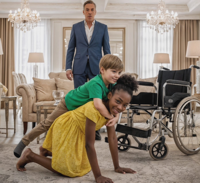 Sur l’épais tapis, une fillette du même âge que Tommy, robe jaune froissée, avançait à quatre pattes. Sa longue chevelure balayait le sol à chaque mouvement. Accroché à son dos, Tommy riait aux éclats, les joues allumées de bonheur. Le fauteuil, relégué dans un coin, semblait soudain inutile.