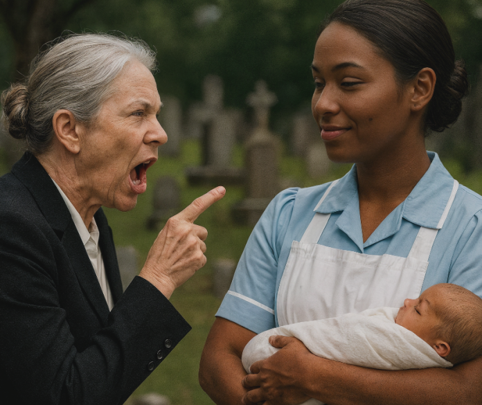 Une femme fortunée se rend sur la tombe de son fils et y découvre une serveuse en larmes tenant un bébé — la révélation qui suivit bouleversa toute sa vie.