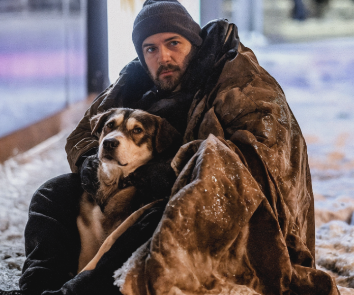 J’allais continuer mon chemin quand j’ai vu un homme sans abri approcher du stand avec un chien. La cinquantaine passée, transi, le regard rivé sur la broche qui tournait.
