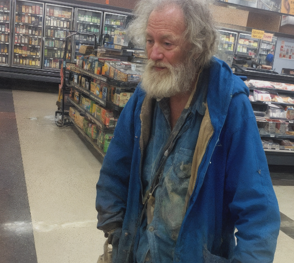 J’ai enfilé mes plus vieux vêtements, barbouillé mon visage de poussière, laissé pousser la barbe une semaine. Puis je suis entré, méconnaissable, dans l’un de MES supermarchés, l’air d’un type qui n’avait pas vu un repas chaud depuis des jours.
