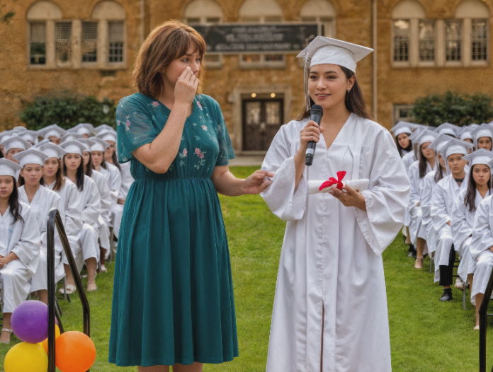 Elle s’inclina. La salle éclata en applaudissements. Des professeurs, des parents, des élèves—beaucoup pleuraient. Au dernier rang, Maria resta un instant les mains sur la bouche, submergée. Ce furent les larmes les plus lumineuses de sa vie. Un enseignant rejoignit Lily sur scène et posa une main sur son épaule :