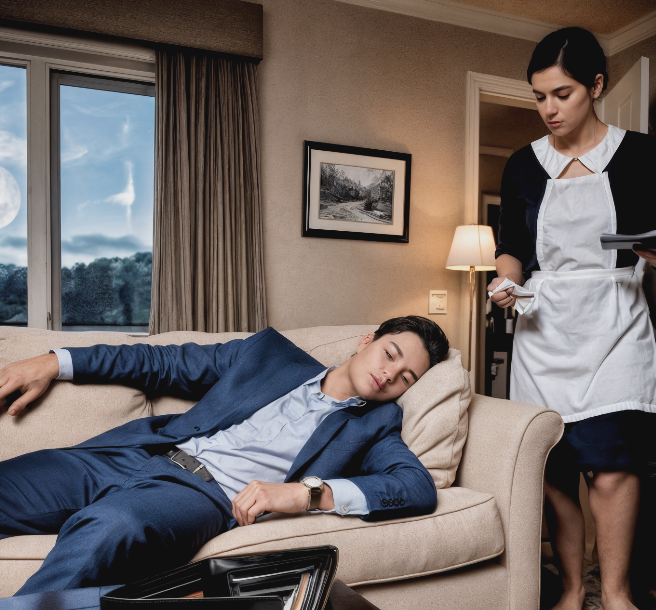Vingt-deux ans, originaire d’un village oublié sur la carte, elle avait appris très tôt à ne pas faire de vagues. De grands yeux couleur miel, une voix claire, presque chantée. Orpheline, sans filet, elle tenait à ce poste comme à une bouée. Tout, dans cette maison, la laissait songeuse — plafonds peints, tapis profonds, tableaux qu’on regardait comme on lit une prière — mais ses mains n’effleuraient que ce qu’elles devaient. Elle faisait son travail avec une délicatesse d’orfèvre, puis repartait avec ce petit « bonne soirée » qui n’attend rien en retour.