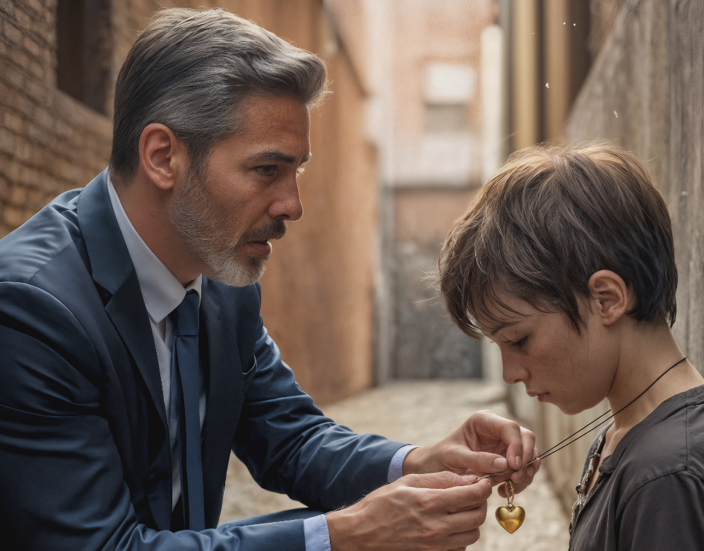 Le cœur de Thomas M. se serra brutalement lorsque son regard se posa sur le pendentif en or qui brillait autour du cou maigre d’un gamin assis par terre. Pendant une seconde, le reste du monde se dissout : le trafic, le bruit de Chicago, les notifications sur son téléphone… tout disparut.