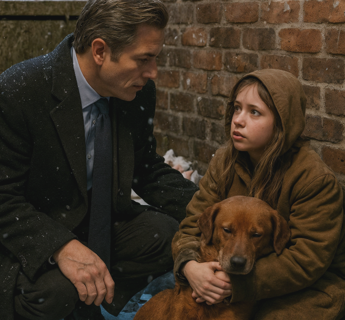La petite n’avait pas plus de sept ans. Ses cheveux formaient des nœuds sous la neige, ses chaussures étaient détrempées, ses doigts engourdis et ses lèvres tirant vers le violet. Elle serrait contre elle un petit chien bâtard au pelage brun, maigre comme un clou, les côtes saillantes. Elle lui caressait la tête en murmurant d’une voix cassée :