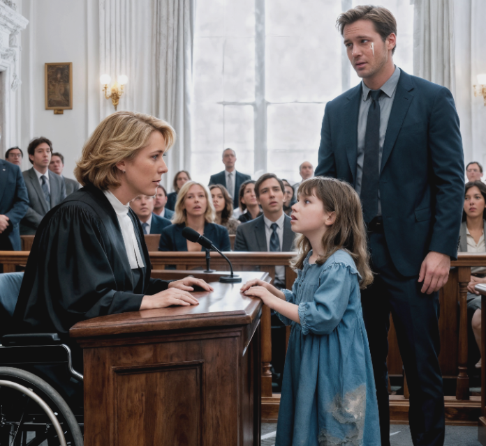 Derrière l’estrade, la juge Helena Cartwright la suivait du regard. Assise dans son fauteuil roulant, les mains posées sur les accoudoirs comme sur deux piliers, elle régnait sur cette pièce depuis des années avec une autorité que personne n’osait contester. Vingt ans de carrière lui avaient offert tout le catalogue humain : larmes, cris, supplications, menaces, évanouissements, applaudissements même. Mais jamais, au grand jamais, une enfant de cinq ans ne s’était avancée vers elle avec cette détermination presque adulte dans les yeux.