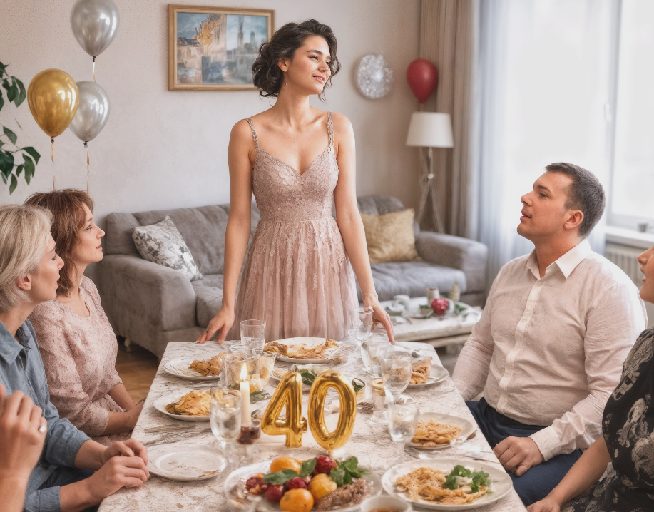 À dix-huit heures, l’appartement se remplit de voix, de rires, de manteaux posés partout. Parents, collègues, couples d’amis, familles. Les enfants rentrèrent aussi : Polina, avec un petit gâteau d’une pâtisserie “tendance”, et Kirill avec une carte d’anniversaire achetée, à l’évidence, au dernier moment.