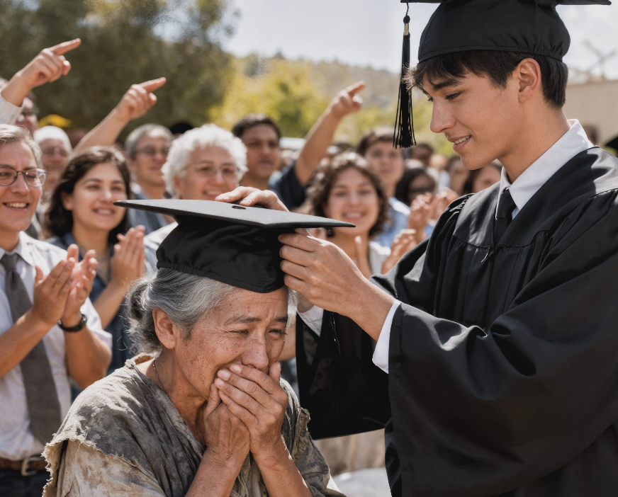 Ma mère s’est levée lentement, comme si ses jambes n’y croyaient pas. Les larmes coulaient, et pourtant elle souriait. Et quand elle a levé le diplôme, je n’ai pas vu une femme pauvre : j’ai vu un géant.
