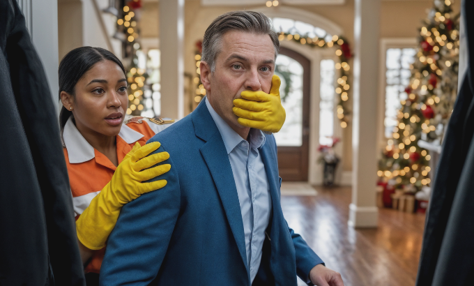 Cynthia saisit son poignet et le tira vers un petit placard près de la cuisine. Odeur de citron, de linge propre, de produits ménagers. Elle referma presque entièrement la porte — juste assez pour laisser une fente et observer.