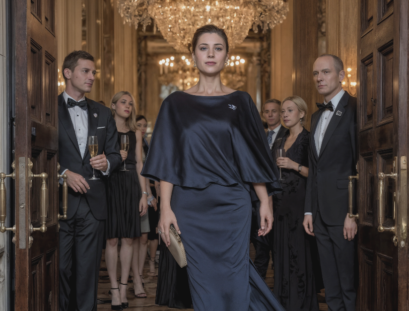 Sa mère, **Veronica**, portait une robe qui brillait comme une promesse de supériorité. Bijoux à tous les endroits possibles. Regard froid.