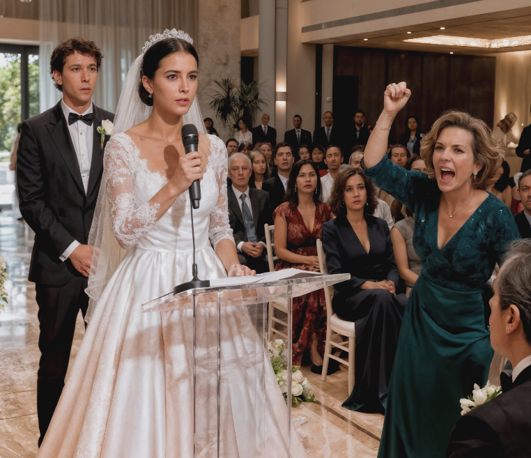 Par un incident absurde, la sonorisation du couloir s’est activée. Et la voix de ma future belle-mère, Carmen Salgado, a jailli des haut-parleurs, sèche, tranchante, sans la moindre gêne :
