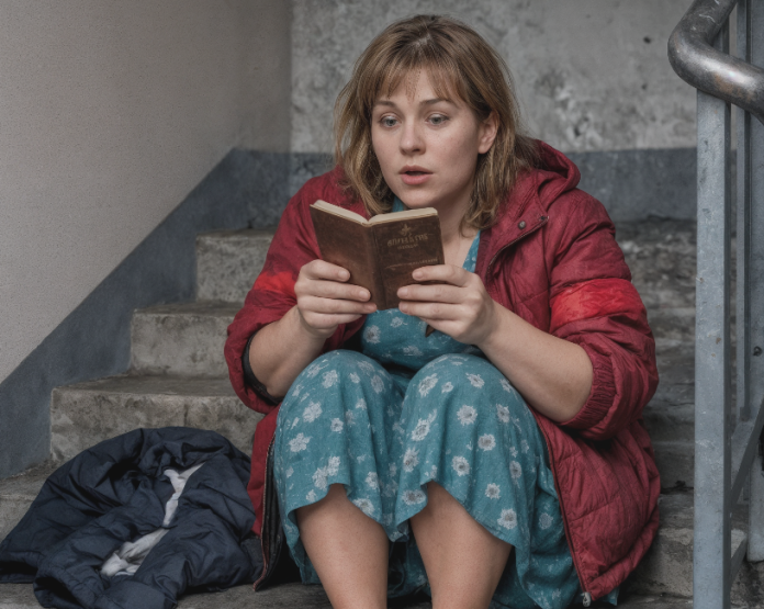 Derrière le guichet, une jeune femme d’une vingtaine d’années leva les yeux… puis resta figée en voyant Marina : peignoir, veste d’enfant, pieds nus, cheveux en bataille.