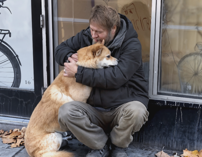 Il lui proposa un morceau de son sandwich. Le chien remua la queue, s’approcha avec enthousiasme… puis, au lieu de croquer, attrapa la nourriture d’un coup sec et s’enfuit, le repas coincé entre les dents.