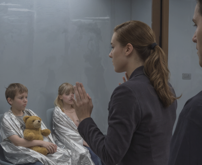 Cooper est enveloppé dans une couverture de survie qui froisse et brille. On dirait un petit astronaute brisé. Ses épaules tressautent sans pause — ce tremblement-là n’a plus grand-chose à voir avec le froid, et tout à voir avec un corps qui essaie d’absorber une terreur trop grande pour les mots.