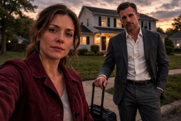 Au moment où j’ai compris que le papier était scotché **sur ma propre porte d’entrée**, la poignée de ma valise avait déjà glissé de ma main. Elle a heurté le trottoir dans un bruit sourd, un *toc* mat qui m’a traversé jusqu’aux semelles. Mes vêtements, mes livres, mes cadres photo étaient éparpillés sur la pelouse impeccablement bordée, comme si quelqu’un avait pris ma vie, l’avait secouée au-dessus de l’herbe, puis était parti sans se retourner.