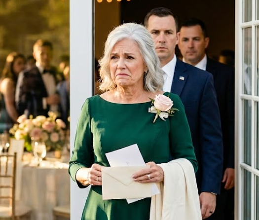 La réception avait lieu dans une salle où flottaient des odeurs d’agneau rôti et de champagne hors de prix. Je me tenais près du buffet des desserts, un verre d’eau à la main, en regardant Dominic rire avec ses témoins. Sa cravate était de travers — elle l’était toujours quand il était heureux. J’ai glissé la main dans mon sac pour toucher la carte que j’avais écrite pour lui, celle avec le chèque et cette longue lettre où je lui disais combien son père aurait été fier.