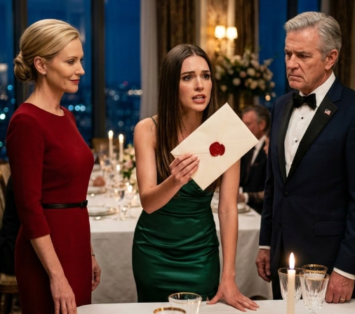 « Amusant », dis-je, ma voix traversant les derniers rires de Jenna avec un calme qui me surprit moi-même. Je glissai la main dans ma pochette vert émeraude et sortis une épaisse enveloppe crème scellée à la cire. « Moi aussi, j’ai une vérité à révéler. »