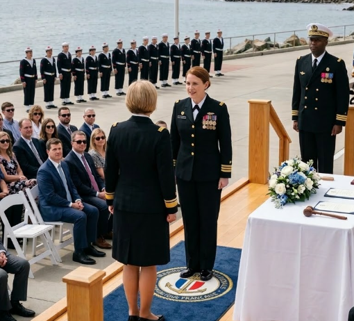 Le silence de Pauline lors de ce dîner n’était pas un signe de faiblesse ; c’était le silence d’un commandant qui sait que sa position est assurée, indépendamment de la propagande ennemie. Elle regarda ses parents—deux personnes qui avaient passé trois décennies à la regarder sans jamais la voir—et ressentit un profond détachement. Elle comprit qu’ils n’étaient pas « aveugles » au sens médical ; ils étaient volontairement illettrés dans la langue de sa vie. La cérémonie des SEAL à la base amphibie navale de Coronado était un spectacle de masculinité d’élite. L’air était épais de sel et chargé du prestige du Trident. Pauline arriva en Service Dress Blues. La seule large bande dorée sur sa manche—l’insigne de contre-amiral (de seconde classe)—miroitait au soleil de Californie. Pour quiconque avait ne serait-ce qu’une connaissance superficielle de la Marine, elle était la personne la plus importante de la foule. Pour ses parents, elle était simplement « Pauline en tenue de travail. »