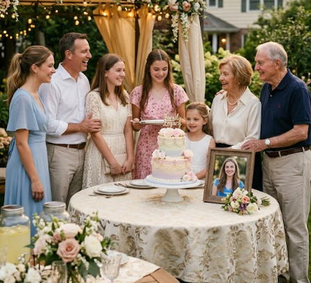 Le monde n’a pas basculé ; il est simplement devenu froid. Ma nièce Kay, la fille de Heather, était au centre de l’attention avec une robe scintillante et une écharpe. Elle venait tout juste de terminer la quatrième. La « cérémonie » était pour le collège. Près du gâteau se trouvait une photo encadrée de Kay portant une tiare, tenant un diplôme roulé.