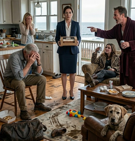 je suis entrée dans l’allée du sanctuaire en bord de mer que j’avais acheté pour le cinquantième anniversaire de mariage de mes parents, tenant un gâteau au chocolat et m’attendant à pénétrer dans un havre de paix profonde. Au lieu de cela, l’odeur lourde et aigre de bière rassis et de graisse de fast-food m’a frappée avant même que je n’aie franchi le seuil. Ma mère pleurait silencieusement à l’évier de la cuisine, mon père tremblait sur une chaise en bois dur, paraissant des décennies plus vieux que ses soixante-huit ans, et le rire grinçant de ma sœur résonnait dans le couloir. Quand mon beau-frère pointa un doigt vers mon père en criant : « C’est ma maison, sors d’ici », l’architecture psychologique de toute ma famille s’est effondrée, pour être reconstruite en l’espace d’une heure.