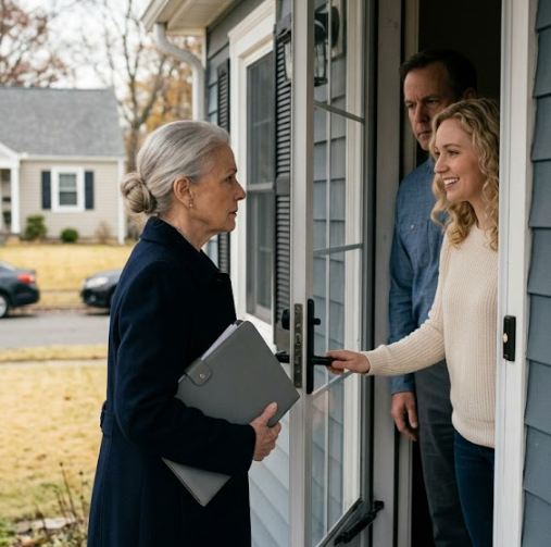 Puis la porte s’entrouvrit—seulement exactement autant que le permettait la lourde chaîne de sûreté. Le visage de Britney apparut dans l’ouverture. Elle portait un pull crème immaculé, ses cheveux blond pâle bouclés à la perfection, et elle m’offrit un sourire si glaçant, si travaillé, qu’on aurait dit qu’elle l’avait répété devant le miroir du couloir toute la matinée.