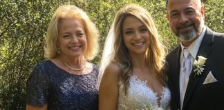 Lors d’un mariage somptueux, les beaux-parents, vêtus de leurs plus belles...