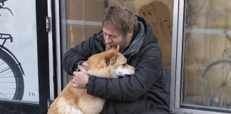 Chaque jour, une chienne s’arrête devant une boutique fermée, y reste...