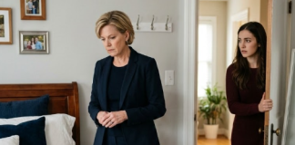 Ma fille de huit ans m’a attrapé le poignet et a chuchoté : « Maman, chut… Ne bouge pas. » Puis, à travers la...