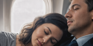 Une mère exténuée s’endort dans l’avion avec son bébé, la tête...
