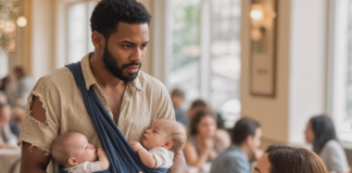 Une mère au cœur simple, portant tendrement son propre fils, s’arrêta...